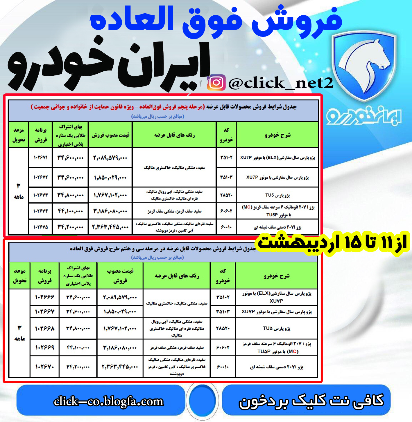 ⏰ زمان ثبت نام فروش فوق العاده: از 26 تا 28 بهمن بخشنامه ایران خودرو