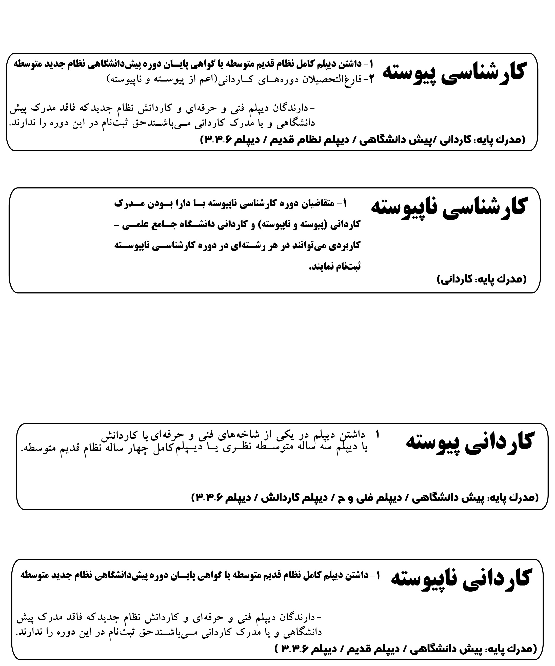 کاردانی ناپیوسته پیش دانشگاهی / دیپلم نظام قدیم / دیپلم 6-3-3 به کاردانی دانلود رشته های استان بوشهر