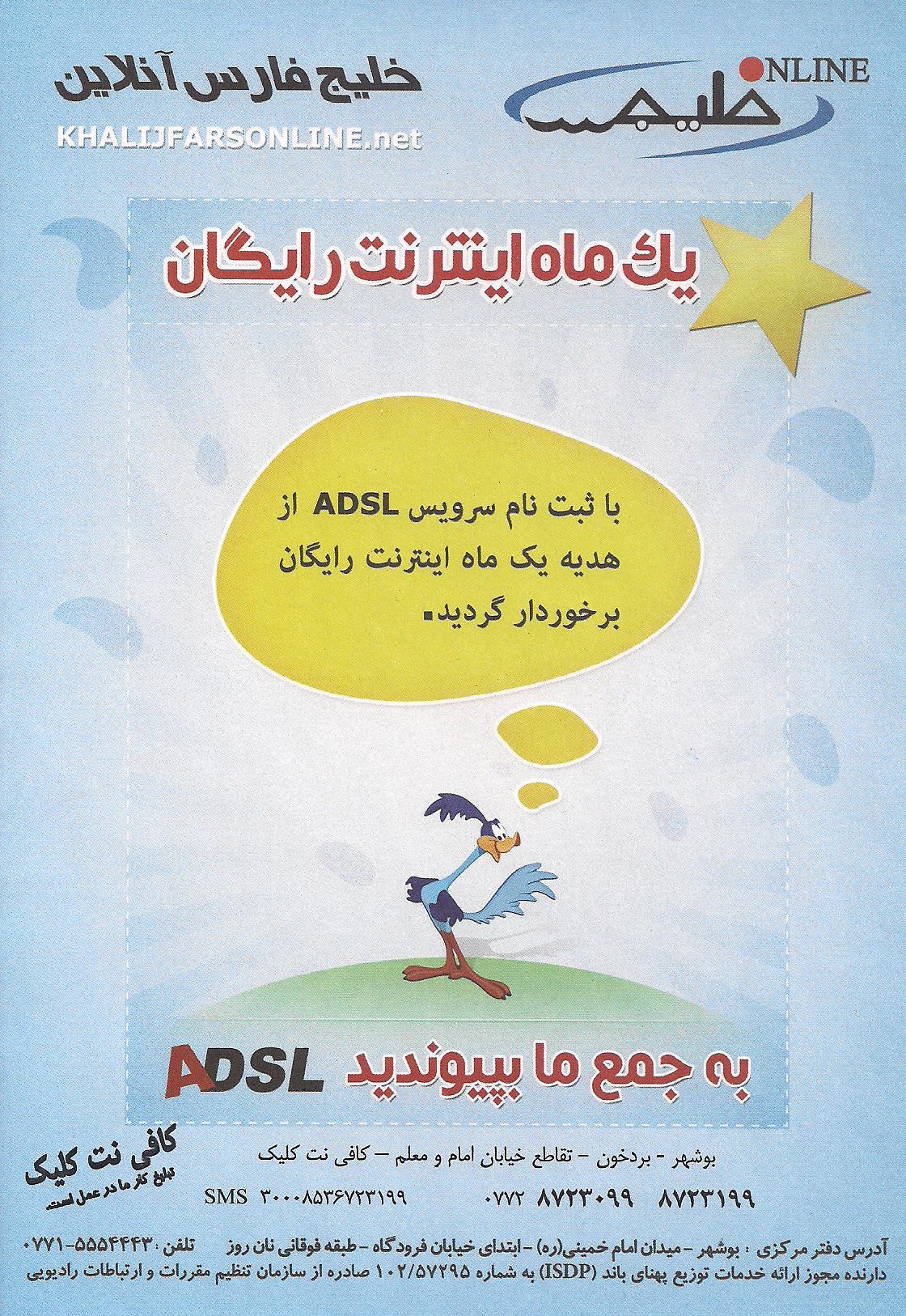 شــارژ آنـلاین ADSL خلیج فارس آنلاین - کافی نت کلیک بردخون