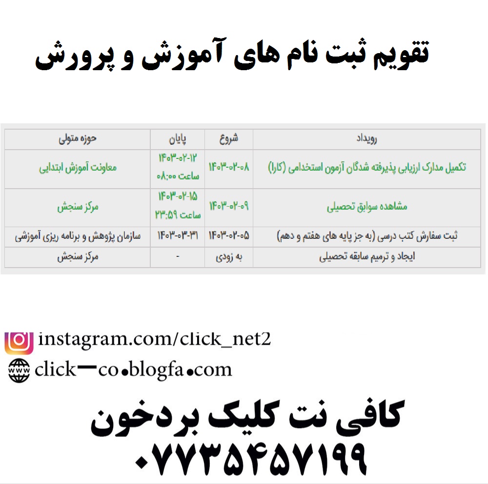موضوعات مرتبط: کافی نت کلیک بردخون ، ثبت نام های اینترنتی